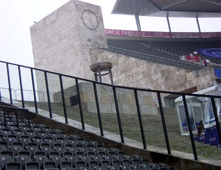 deutet Lupo auf die VIP-Räume, die unterm Dach der Haupttribüne