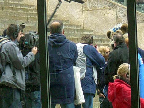P-Block, sehe sofort Gerd, den Richter und lese eine sms. Ein Volo-Kollege