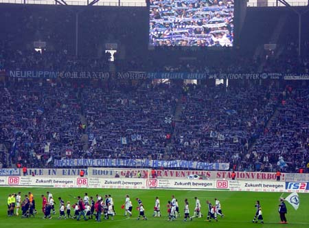 in der Ostkurve. Zwar pfeift niemand und alle brüllen "Auf geht's