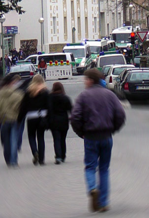 von zahlreichen Polizisten - Richtung Gästekurve zieht und das übliche
