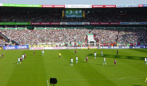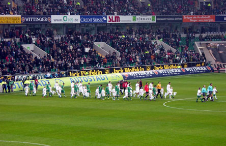 die Stadionsprecher (vom Radiosender ffn ausgeliehen) zitieren Wolfsburgs